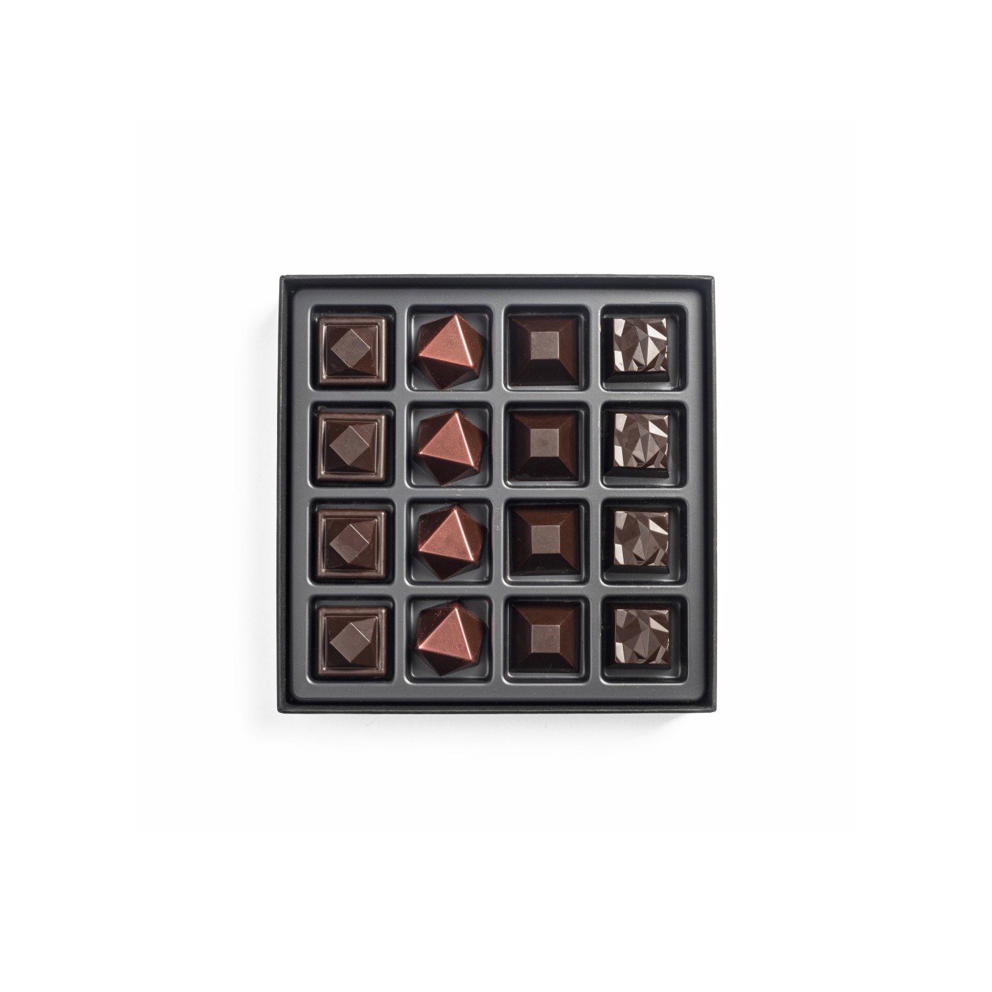 Naše čokoladne poslastice pravimo ručno svakog dana od pažljivo odabranih sastojaka – najfinije čokolade sa visokim sadržajem kakao delova, sveže samlevenih orašastih plodova, voća, aromatičnih začina i najkvalitetnijih eteričnih ulja. Svi sastojci su prirodni i visokokvalitetni, bez veštačkih aroma i konzervanasa.